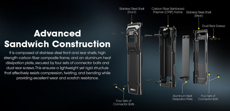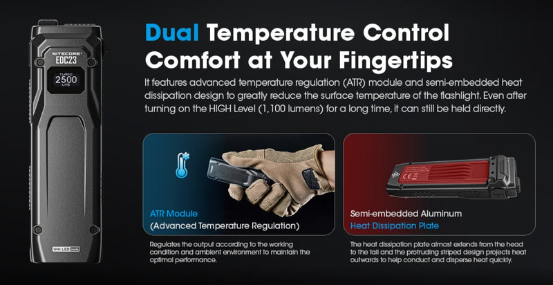 Note: The stated data is measured in accordance with the international flashlight testing standards ANSI/PLATO FL 1-2019, using the built-in Li-ion battery (1,500mAh) under laboratory conditions. The data may vary in real world use due to different environmental conditions.