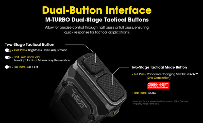 STROBE READYTM Technology to enable a quick access to STROBE Mode, which uses randomly changing frequencies for stronger dizzying effects