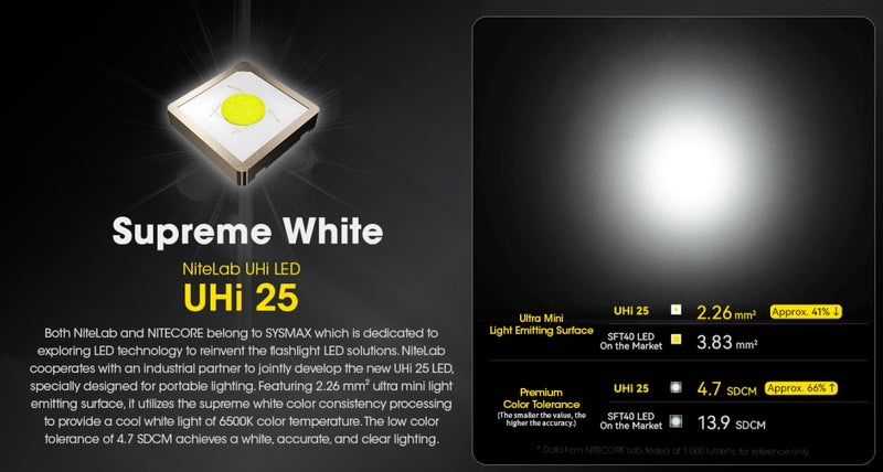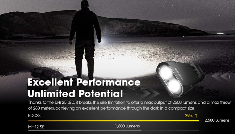 Utilizes 2 x UHi 25 LEDs with a max output of 2,500 lumens